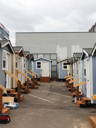Named for the adjacent street, Roosevelt Way, Rosie’s Village in the U-district features 35 tiny houses which provide safe and supported enhanced shelter for up to 65 people. Referrals come in through the City of Seattle’s HOPE Team.